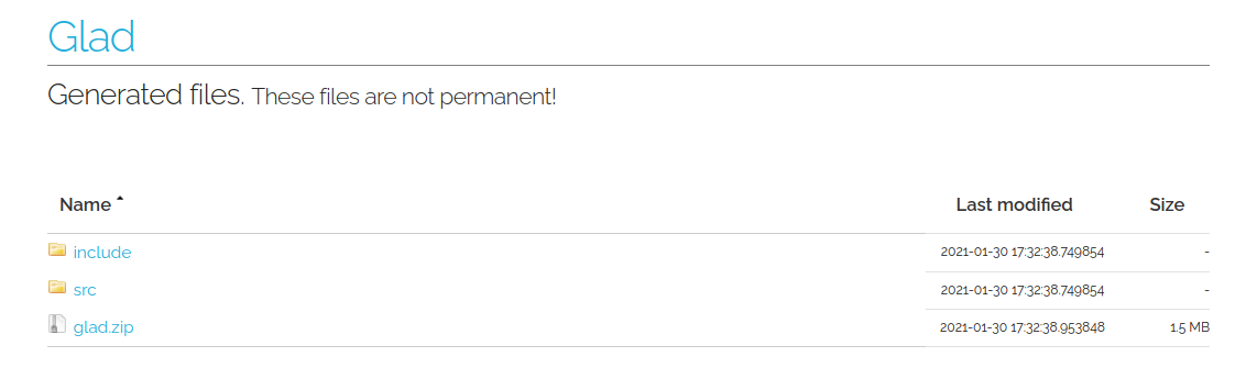 glad.zip을 클릭합니다. 다운받은 glad.zip 파일을 프로젝트 폴더에 압축을 풉니다. 그럼 아래 같은 구조가 되겠죠:
