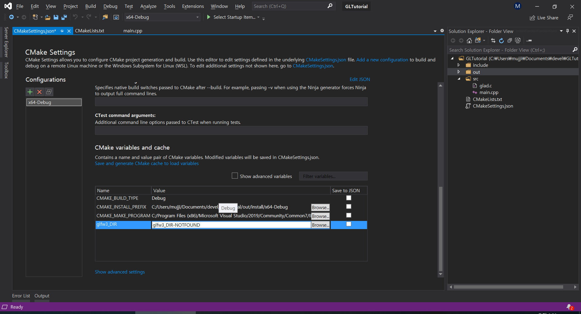 (9) glfw-3.3.2/out/install/x64-Debug라는 폴더 안에 include와 lib라는 폴더가 생겼다면 설치 완료!